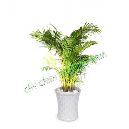 - Chậu cây cau vàng Phương Nam 80 - 100 cm mọc thành bụi dày vì luôn đâm chồi ở bên, cây cao xen lẫn cây thất rất đẹp. Cây chỉ cao trung bình từ 80 - 100 cm nếu trồng ở chậu, còn đem trồng ở vườn thì cao đến 6 - 7 m, đường kính lên đến 20 cm.