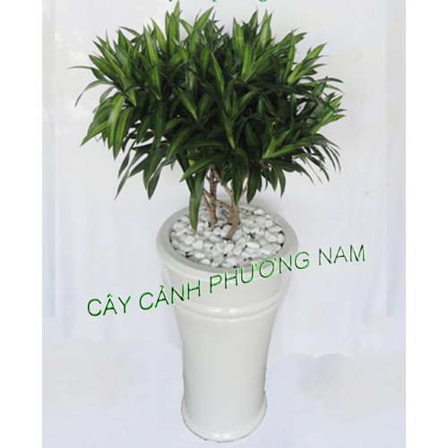 - Cây trúc bách hợp có vẻ đẹp nhẹ nhàng, thanh thoát và tinh tế, khi kết hợp với chậu sứ tráng men trắng sẽ là điểm nhấn tuyệt vời cho không gian sống của bạn. Loại cây này mang ý nghĩa phong thủy là giúp bình lặng tâm hồn, xua tan những điều không hay trong cuộc sống.