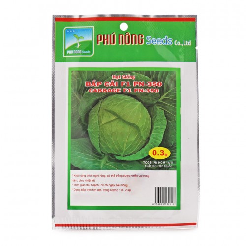 - Hạt giống bắp cải F1 Phú Nông 0,3g có đặc tính sinh trưởng mạnh và khả năng kháng nhiều loại sâu bệnh tốt. Sản phẩm cây trồng cho năng suất chất lượng và hiệu quả kinh tế cao.