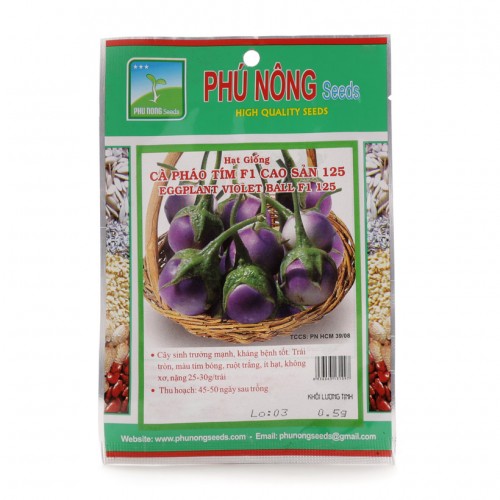 - Hạt giống cà pháo tím F1 cao sản Phú Nông 0,2g được chọn lọc kỹ lưỡng, có khả năng kháng bệnh rất cao. Đồng thời, sản phẩm có độ sạch trên 98%, giúp người dùng có thể gieo trồng dễ dàng.