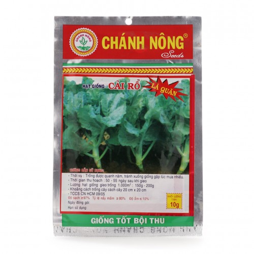 - Hạt giống cải rổ lá quăn Chánh Nông 10g được chọn lọc kỹ lưỡng, có khả năng kháng bệnh rất cao. Đồng thời, sản phẩm có độ sạch trên 98%, giúp người dùng có thể gieo trồng dễ dàng.