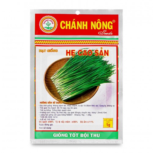 - Hạt giống hẹ cao sản Chánh Nông 1g có đặc tính sinh trưởng mạnh và khả năng kháng nhiều loại sâu bệnh tốt. Sản phẩm cây trồng cho năng suất chất lượng và hiệu quả kinh tế cao.